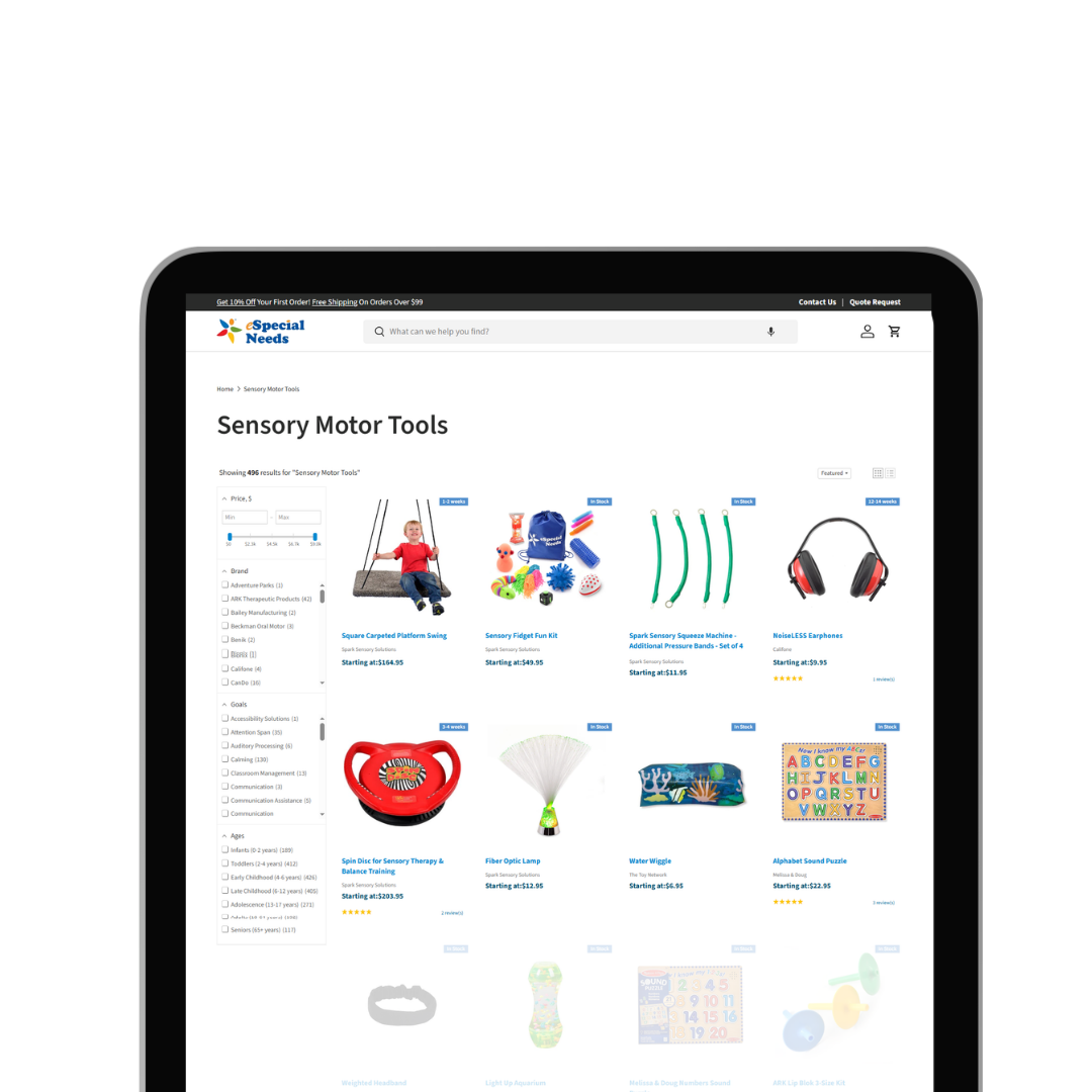 By migrating eSpecialNeeds.com to Shopify Plus and implementing a custom Enterprise theme, we elevated both the user experience and technical foundation of the store. This redesign: